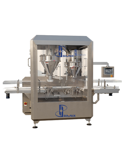 該設(shè)備是我公司在粉末罐裝領(lǐng)域長(zhǎng)期實(shí)踐的基礎(chǔ)上,摒棄原有轉(zhuǎn)盤式喂罐設(shè)計(jì)理念,而全新設(shè)計(jì)的一款四工位罐裝機(jī)。雙排主輔雙頭充填系統(tǒng)和喂罐系統(tǒng),保證了高精度同時(shí)又去除了轉(zhuǎn)盤式喂罐系統(tǒng)清理不便的缺點(diǎn)。主要完成高精度充填計(jì)量工作??膳c其它設(shè)備配套組成整套罐裝流水線,適用于罐裝奶粉、蛋白粉、雞粉、葡萄糖、米粉、可可粉、固體飲料等。