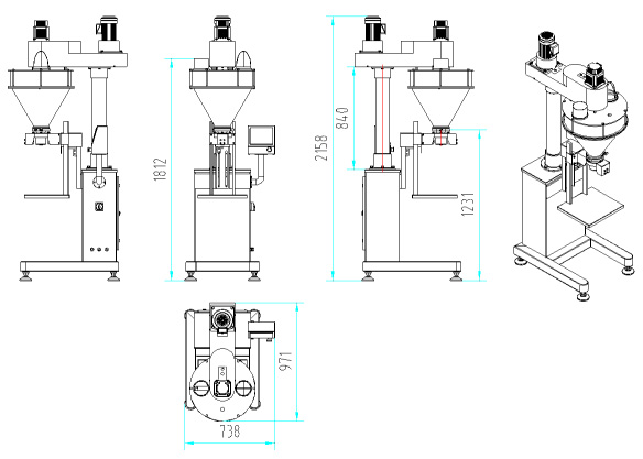 氣動夾袋裝置和托架裝在重量傳感器上,根據(jù)預(yù)先設(shè)定的重量進(jìn)行快速和慢速充填,高反應(yīng)速度的稱重系統(tǒng),保證高精度得以實現(xiàn)。