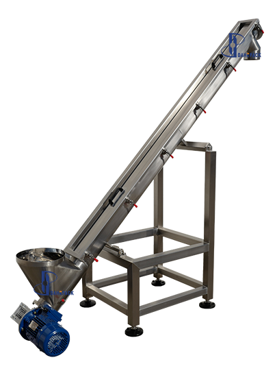 上料管為‘U’形槽,槽上有不銹鋼圓弧蓋,用卡扣扣緊,中間用密封條密封,不漏粉,打開蓋子便可方便清洗。